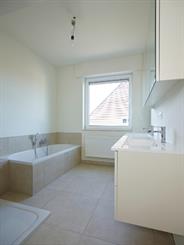 Lichtrijke badkamer met dubbel lavabomeubel , bad en grote douche.